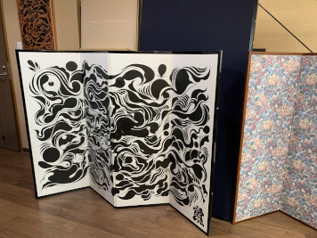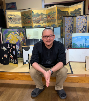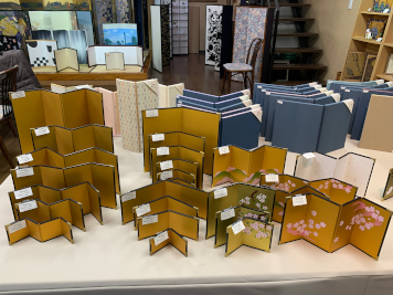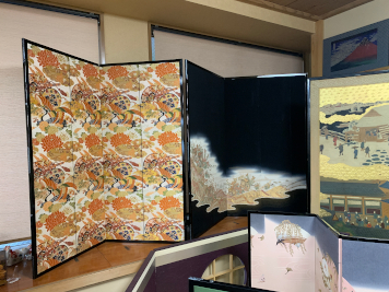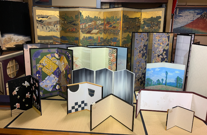 2026年2月25日 / 最終更新日時 : 2026年2月27日 ihcsacafe_user 全ての記事 アレンジは無限大∞ 究極の映えアイテム 「屏風」を飾ってみませんか? アレンジは無限大♾️究極の映えアイテム 「屏風」を飾ってみませんか? 印刷用PDF 以前から大きな屏風絵を鑑賞するのが好きで、博物館、美術館で「〇〇図屏風」などがあると、いつまでも眺めていたい気持ちになる。昨年、ある特別展で出会った屏風は、折り畳み方によって見える絵柄が変わるというもので、屏風の構造の面白さにも興味を持った。 屏風をもっと知りたいと思い、東京都内に残る唯一の専門店「片岡屏風店」を訪れたところ、伝統的な装飾品である屏風が、令和の今、さまざまにアレンジされていた。屏風は博物館に展示するだけでなく、現代の生活空間やイベントで幅広く活用される大きな可能性を持っているのだ。 片岡屏風店の創業は1946年。お話を伺った片岡孝斗(かたおか こうと)氏は昨年代表取締役社長に就任した3代目。米国への留学経験から流暢な英語を操り、海外との直接取り引きや、外国人客の対応にもあたっている。 まずは屏風の基礎知識から教えて頂いた。屏風は今から1300年ほど前に中国大陸から日本に伝わったと考えられている。その構造は、木材を格子状に組んでパネル状の枠組みを作り、このパネルどおしを横に蝶番(ちょうつがい)で繋げる。そしてパネル木枠の上にノリを付け、紙を何層にも重ねて貼り付けていき、最後に表面に箔やデザインを施す。 片岡孝斗氏 ベースとなる木枠 木枠の上に紙を重ね貼りする工程 和紙のチョウツガイ 片岡氏はここで、中国の屏風と日本の屏風には大きな違いがあることを見せてくれた。 まず木枠の素材において、中国の屏風では主に落葉樹を使用するため重量がある。重い屏風面を繋ぐ蝶番(チョウツガイ)は金属製であることが多く、そのためパネルとパネルの間にすき間ができる。 中国の金属製チョウツガイの屏風 一方、日本の屏風にはすき間がなく、驚くほど軽量である。これは木枠に杉など軽い素材を使用していることと、チョウツガイがなんと和紙で出来ているためである。この和紙のチョウツガイは日本の画期的な発明で、パネル間のすき間を無くし、各パネルを360度回転させられる。屏風を持ち運んだり、畳んで保管するのに極めて便利だ。表面に描かれた絵にも継ぎ目の影響を感じさせず、一枚のアートとして鑑賞できる。 和紙のチョウツガイ 屏風の需要 さて、私の「屏風」のイメージは、博物館にある「〇〇図屏風」だが、屏風専門店における主力商品とは何だろうか。片岡氏によると、最も需要が多いのは「節句屏風」。 日本では子供の成長を祝う伝統行事「桃の節句」と「端午の節句」があり、それぞれ雛人形、五月人形を飾る習慣がある。節句屏風とは、人形の背後に必ず立てて飾られる小型の金屏風のこと。 片岡氏の祖父が片岡屏風店を創業した頃は戦後のベビーブームで豪華な雛人形、五月人形を飾る家庭が増え、節句屏風の需要も激増。片岡屏風店は多くの職人を抱え、節句屏風の制作は多忙を極めた。しかしその後ベビーブームが去り少子化へ移行。生活スタイルの変化もあり、節句屏風の需要は減少していった。そこで片岡屏風店では、社屋の一階をショールームに改築し、個人のお客様から注文を取るオーダーメイドの屏風制作にも力を入れるようになった。 片岡屏風店のショールーム 人気のアレンジ屏風 世界に一つだけの屏風を作るこのオーダーメイドで人気なのは、思い出のある着物や帯を屏風に仕立てる「メモリアル屏風」。本来、日本の着物は親から子へ受け継がれ、手直しをしながら何代にもわたって大切に着用し続けられるもの。しかし着物を着る機会が少なくなった今、家族が以前大切にしていた着物はタンスの奥に眠っていることが多い。これらを屏風にリメイクすることで、思い出の品を室内装飾品として日々愛でることができる。着物や帯の生地は和紙との馴染みも良く、屏風として生まれ変わるのに最適な素材だそう。 思い出の帯と着物でメモリアル屏風 押し絵を施した屏風 またお気に入りの写真を屏風にすることも出来る。データを取得し、最新の印刷技術を駆使してプリントしたものを屏風に仕立てる。著作権が適切に処理されれば様々なアーティストとのコラボレーションも可能で、伝統的な絵柄だけでなく、アニメやポップアートも屏風になるのが斬新だ。 ポップアート屏風 すみだ水族館のクラゲの写真を屏風に 匠の手作業 印刷技術は最先端のものを取り入れているが、それを屏風に仕立てるのは全て職人の手作業だ。昔ながらの技法で、使用するのは糊(のり)と刷毛(はけ)のみ。紙を貼りつける作業においては、その日の温度、湿度に応じた微妙なさじ加減が必要で、それは全て職人の経験則に基づいて行われる。紙は貼って乾かすことを繰り返して何層にも重ねていくので日数もかかる。斬新なポップアートも、屏風にすることで